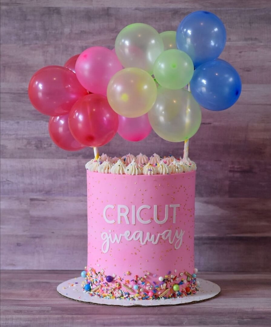 Сладкий торт в комбинации с охапкой мини-шариков создает ощущение праздника и приносит целый вагон восторга!