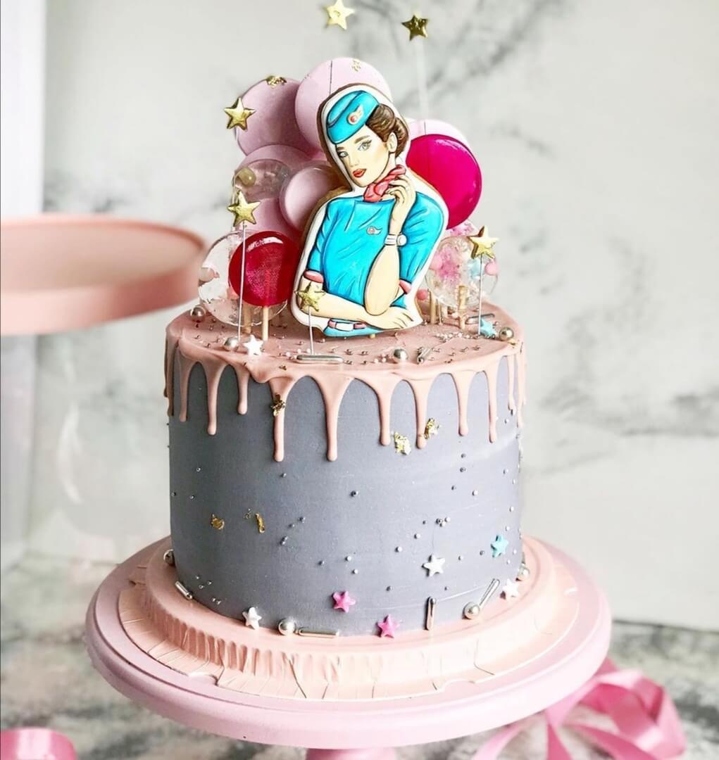 Профессия бортпроводника ассоциируется со стальными нервами, крепкой выдержкой и отменным чувством такта! Поздравьте же своих летающих красавиц с профессиональным праздником с помощью наших тематических тортов