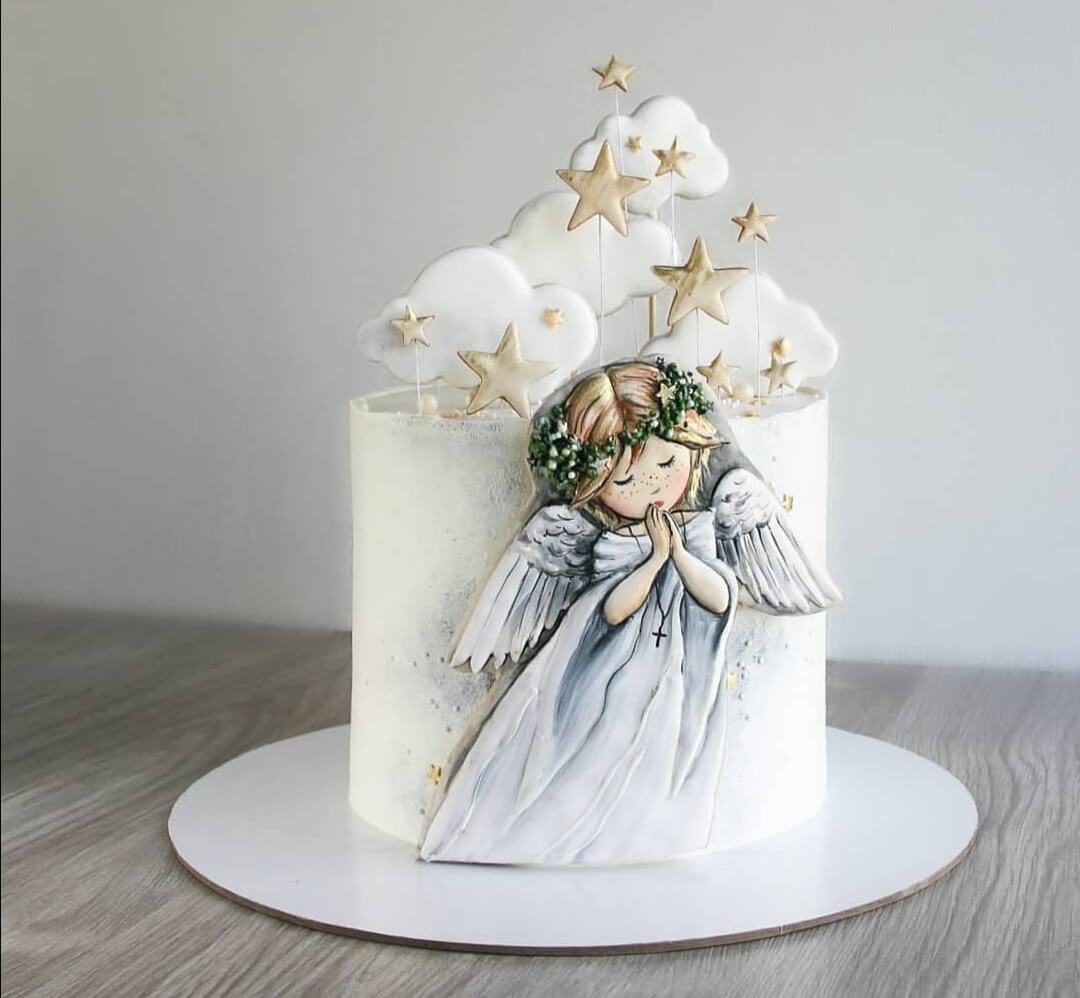 Трогательный белоснежный тортик, подойдет как новорожденному малышу, так и на праздник крещения